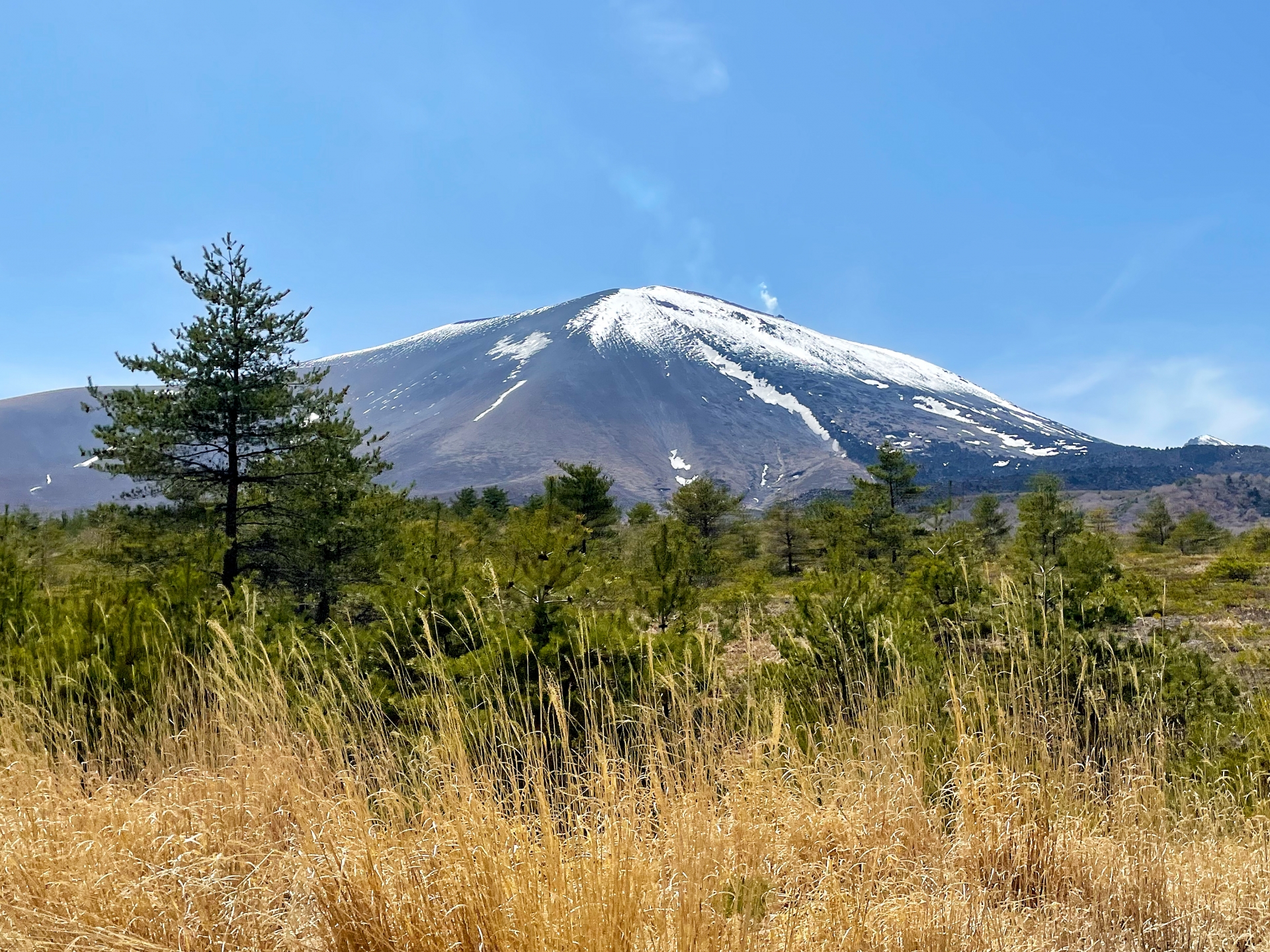 浅間山の黒い火山噴出物からなる独特の土壌には、天を突くように真っ直ぐ伸びるカラマツ林がどこまでも広がります。